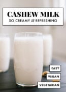 Please let me know how your cashew milk turns out in the comments! If you’re looking for more homemade milk alternatives, check don’t miss my pecan milk, oat milk and pistachio milk.