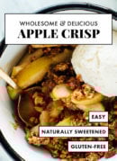 This is my favorite apple crisp recipe, and it just happens to be gluten free and healthier than the rest. This recipe is made with significantly less sugar than most apple crisps, but tastes just as good. In fact, I’d say it’s even better!